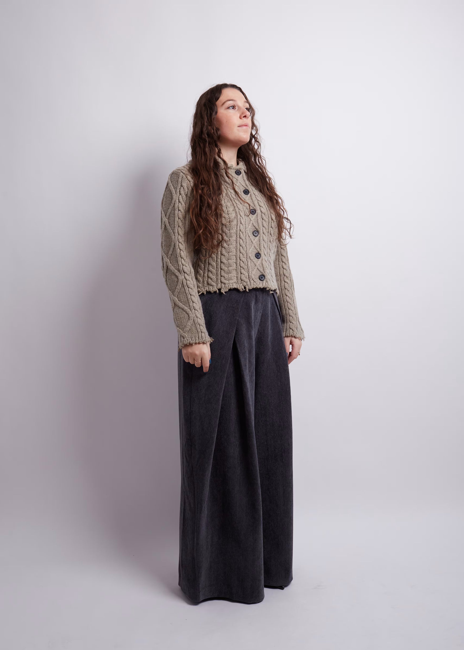 Sage Cropped Distressed Cardigan